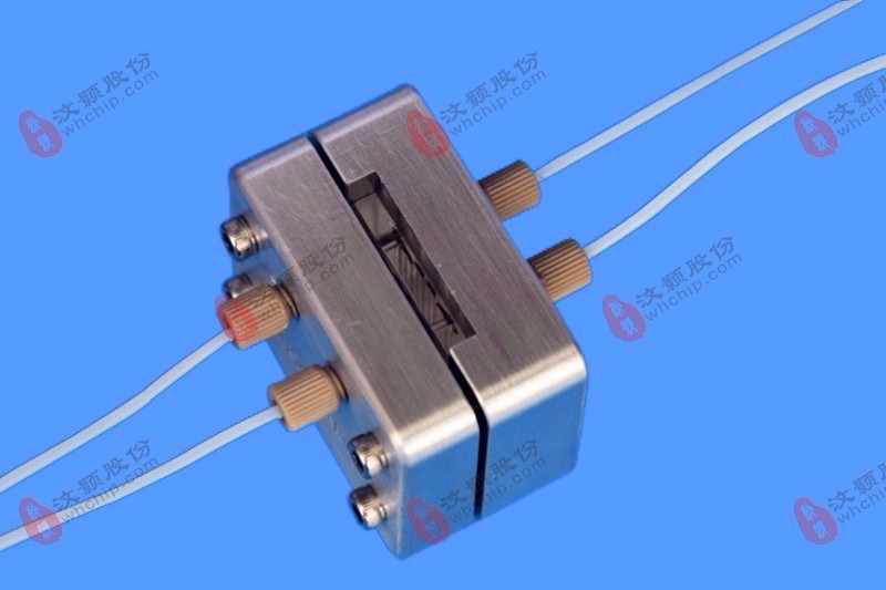 Chip-Diaphragm-Chip Sandwich fixture provide a simple and quick way to separate and filter two-phase liquids. The sandwich membrane-chip structure fixture produced by our company bonds the chip + filter + chip together by pressure. The chip material Including glass and PMMA. Customers can order or customize chips for use with sandwich membrane-chip construction fixtures to perform a range of microfluidic cell operations including separations of biphasic liquids such as water and organic solvents, solution filtration, electrochemical applications and auxiliary quantitative injections and many more.