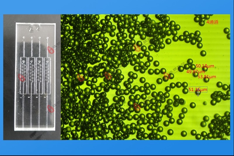 There are standard and customized glass chips for oil-in-water droplets. By controlling the flow velocity of oil phase and water phase in the chip, droplets of different particle sizes are formed, and