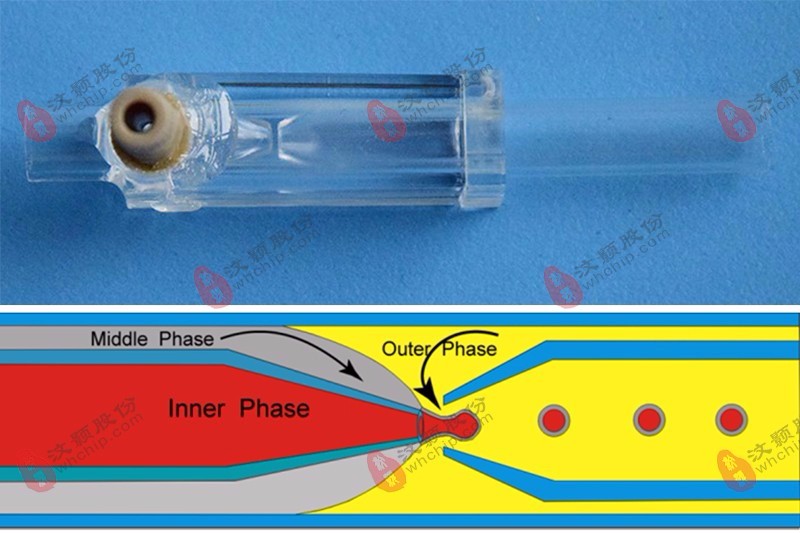苏州汶颢公司具有毛细管芯片系统的成熟开发工艺,可提供不同尺寸的毛细管系统,制备液滴直径约50μm-3mm,可扩展研发多通道圆形毛细管用于制备多核液滴。